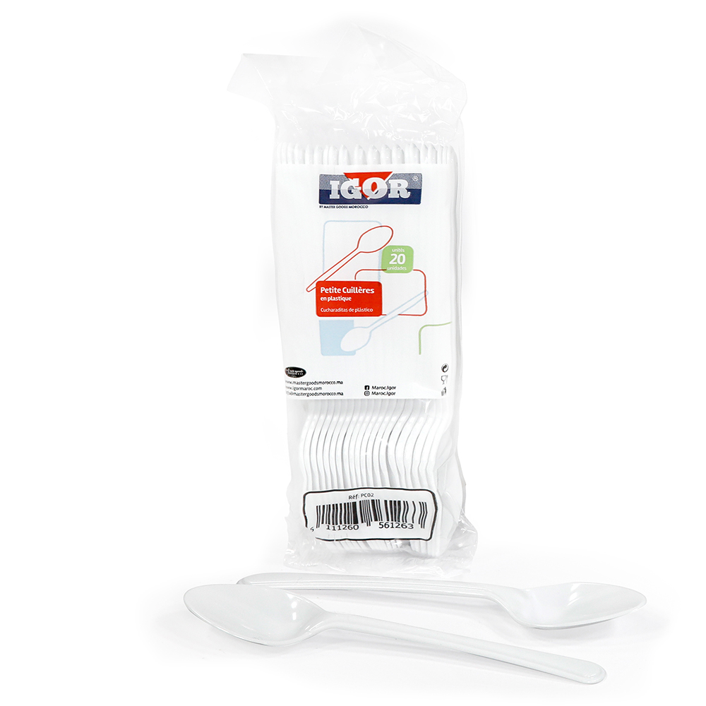 20 P.CUILLERE EN PLASTIQUE BLANC 14.5CM
