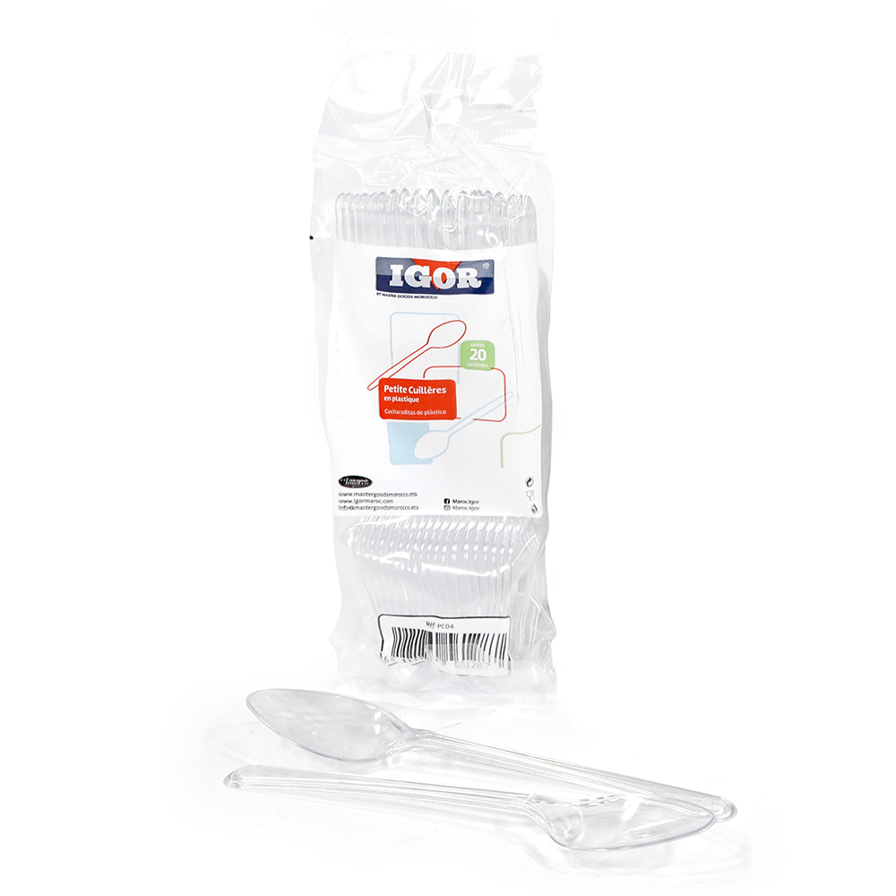 20 P.CUILLERE EN PLASTIQUE TRANSP.14.5CM